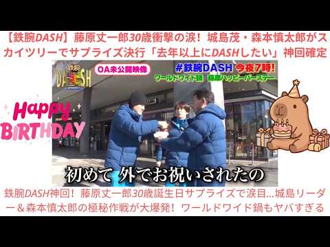 【鉄腕DASH】藤原丈一郎30歳衝撃の涙!城島茂・森本慎太郎がスカイツリーでサプライズ決行「去年以上にDASHしたい」神回確定って動画が話題らしい