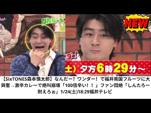 【SixTONES森本慎太郎】なんだー?ワンダー!で福井南国フルーツに大興奮→激辛カレーで絶叫崩壊「100倍辛い!!」ファン悶絶「しんたろー耐えろぉ」1/24(土)18:29福井テレビって動画が話題らしい